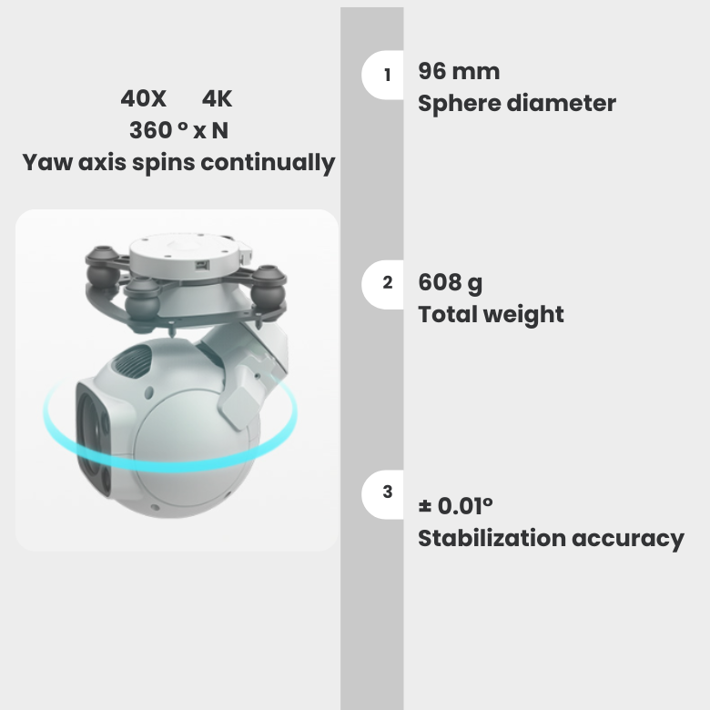 High-Precision Stabilization (±0.01°):Dual-IMU complementary algorithms with IMU temperature control and AHRS fusion ensure ultra-stable imaging.